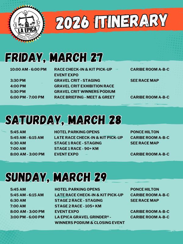 Here’s your official itinerary so you don’t miss a moment of the action—from check-in to race day.